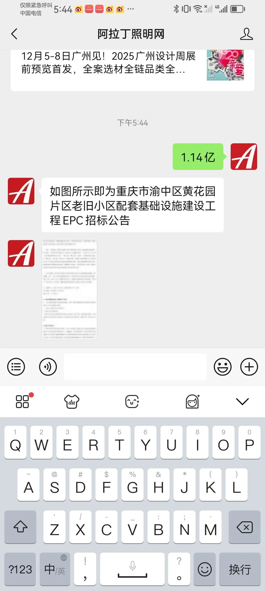 在公众号“发消息”对话框输入“1.14亿”即可获取招标文件